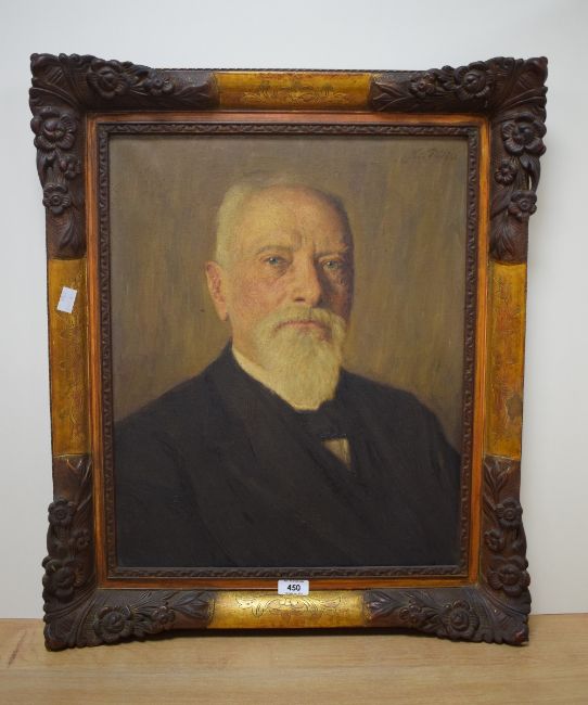 19th Century Oil on canvas, a portrait of a bearded older gentleman in period attire, signature indistinct to upper right (John Pilips?) within moulded gilt frame, 40cm x 59.5cm & 55cm x 64cm overall.