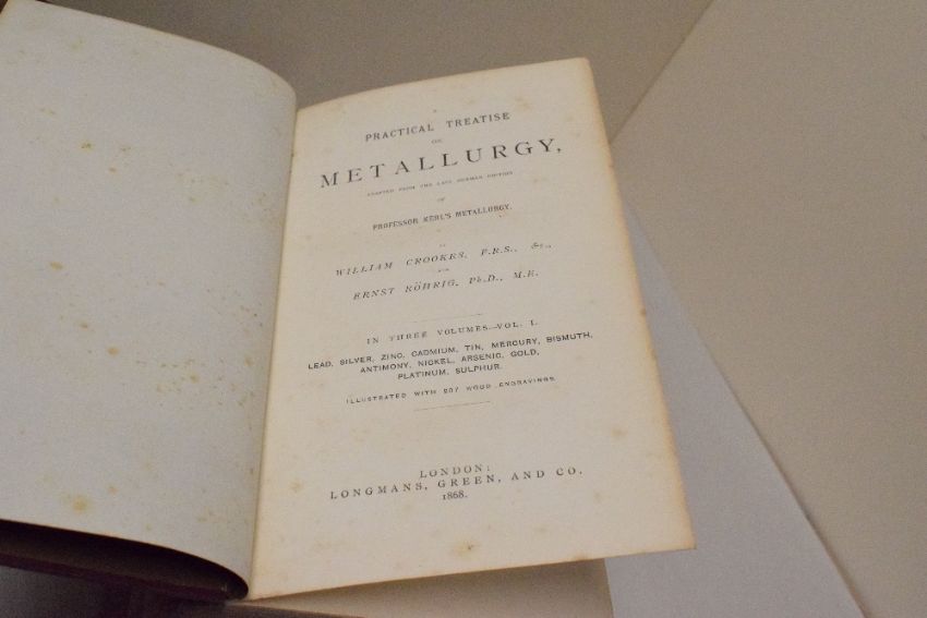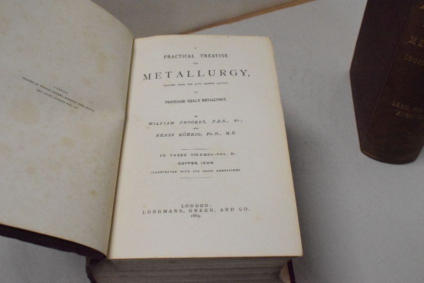 Industrial History. Metallurgy. Crookes, William & Rohrig, Ernst - A Practical Treatise on Metallurgy. London: Longmans, 1868-1870. In three volumes. Original cloth. (3)