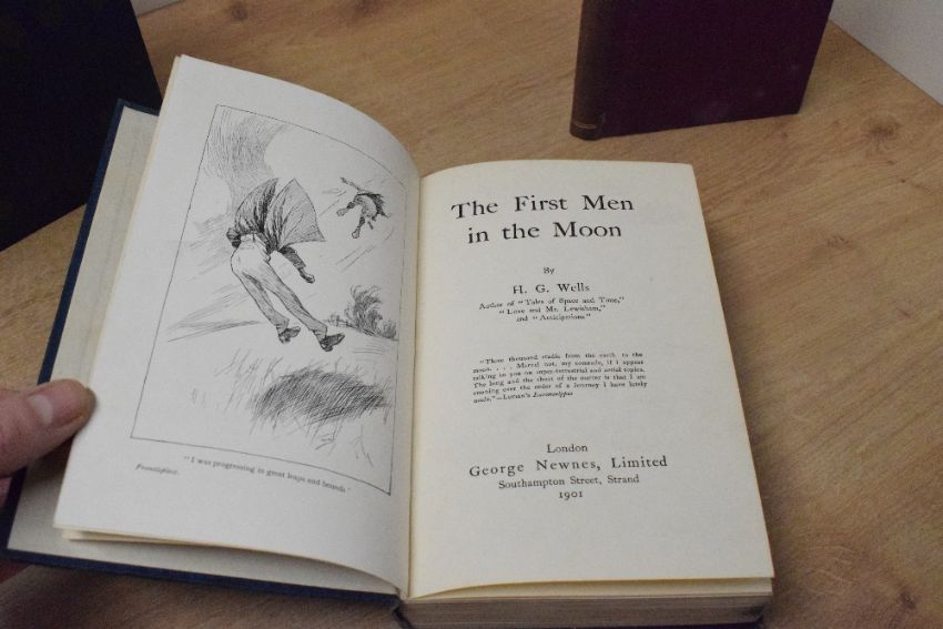 Literature. Science Fiction. Three titles. Wells, H. G. - The First Men in the Moon. London: George Newnes, Ltd. 1901. Illustrated with 12 plates. Original cloth; Stevenson, Robert Louis - Strange Case of Dr Jekyll and Mr Hyde. London: Longmans, Green, and Co. 1886. Early impression. Cloth-bound.; Plus one other. (3)