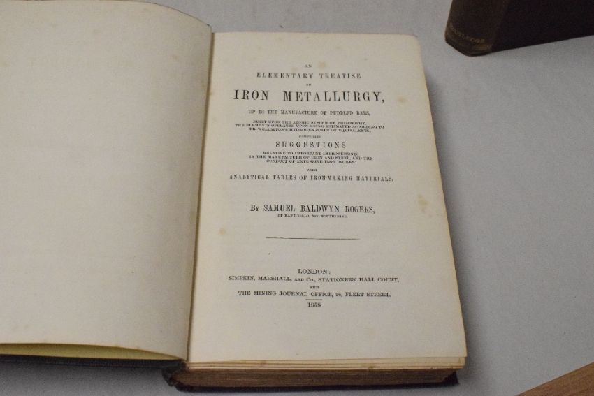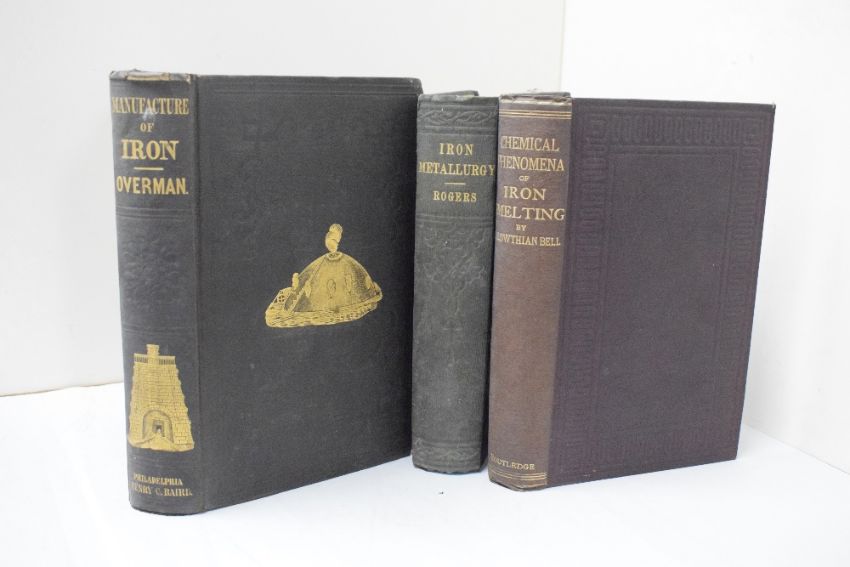 Industrial History. Iron Smelting and Manufacture. Three titles. Rogers, Samuel Baldwyn - An Elementary Treatise on Iron Metallurgy, &c. London: 1858; Bell, I. Lowthian - Chemical Phenomena of Iron Smelting. London: 1872; Overman, Frederick - The Manufacture of Iron. Philadelphia: 1851, 2nd edition. Each in the original cloth. (3)