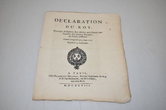 Antiquarian. A French Royal Edict of Louis XIV, 1698. 11pp. Disbound. (1)