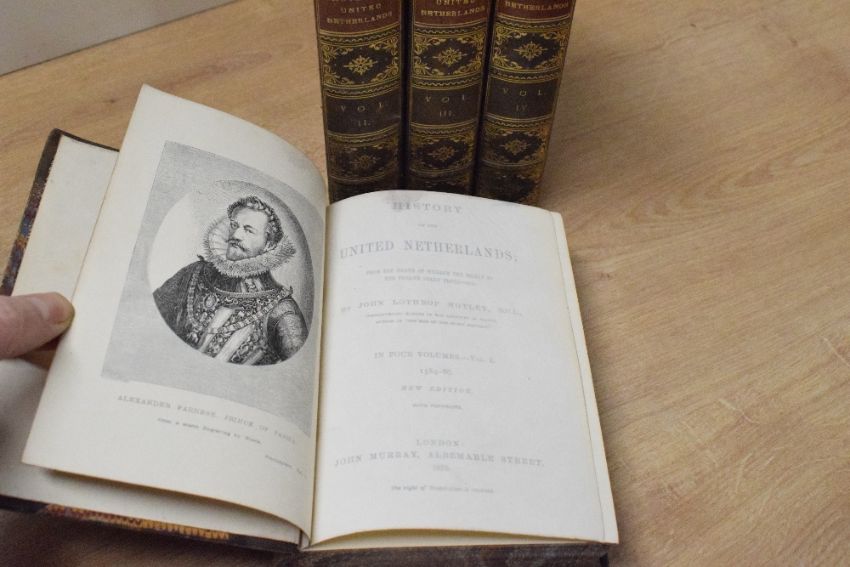 History. Motley, John Lothrop - History of the United Netherlands; &c. London: John Murray, 1875-76. In four volumes. With portraits. Contemporary half calf, spines gilt. (4)