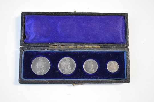 A Queen Victoria 1892 Jubilee Head Maundy Money Set, Comprising A Silver 4p, 3p, 2p, 1p Within A Dated Presentation Box.