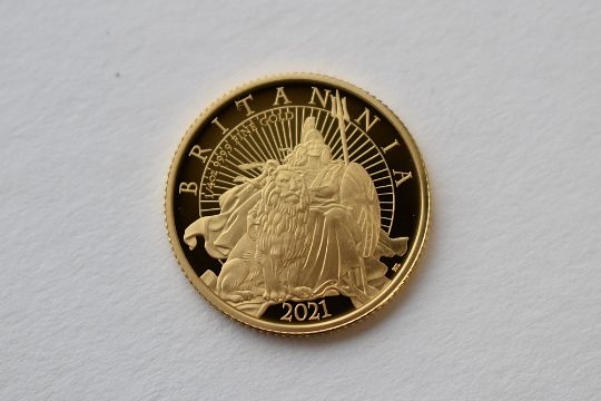 An Elizabeth II 2021 Gold Proof Twenty Five Pound Britannia, Royal Mint, Obv Jody Clarke Portrait Of Elizabeth II, Rev Britannia, 1/4 Oz (7.8 Grams), Encapsulated In A Polished Wooden Presentation Box, Certificate Of Authenticty 661, (Limited Edition Presentation 775, Max Coinage Mintage 1060), Outer Card Box.