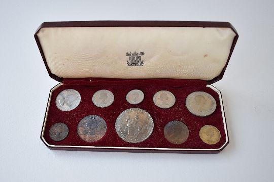 A Presentation Boxed Set Of Elizabeth II 1953 Royal Mint Proof Coins, Comprising A Crown, Halfcrown, Two Shillings, Scottish And English One Shilling, Sixpence, Threepence, Penny, Halfpenny And Farthing.(10)