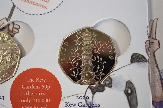 A Royal Mint Great British Coin Hunt Cardboard Folder, Fifty Pence Collector Album, Eighteen Different Coins Including 2009 Kew Gardens (Unc).