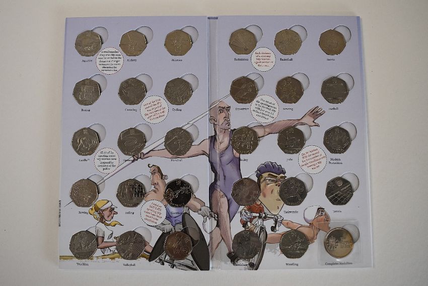 A Royal Mint Great British Coin Hunt Folder . 29 Different Fifty Pence Sport Coins And The Royal Mint Completion Medal. (29 + Medal)