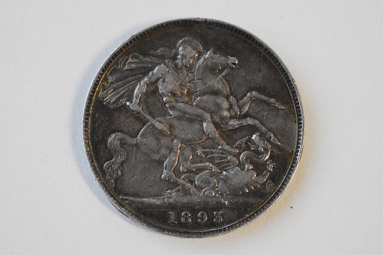 A Queen Victoria 1893 Silver Crown, Old Veiled Bust, LVI, Rev George And Dragon, (Bluish Tone)