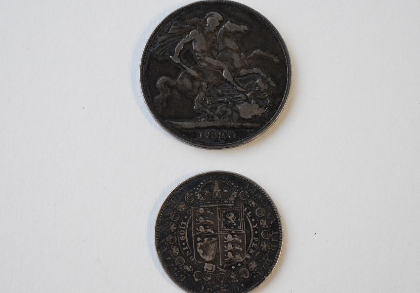 A Queen Victoria 1895 Silver Crown, Old Veiled Head LVIII, Toned. A Queen Victoria 1891 Silver Halfcrown Jubilee Head, Toned. (2) Silver Content Approx 38 Grams