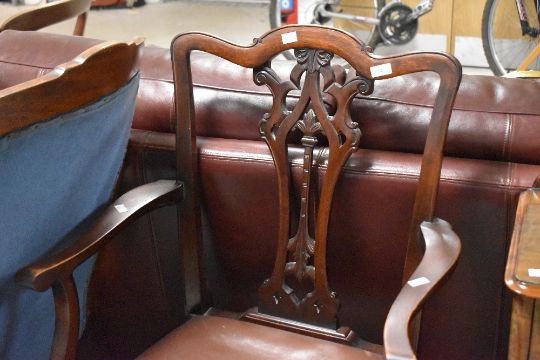 An early 20th Century mahogany Chippendale style carver chair, width approx. 62cm