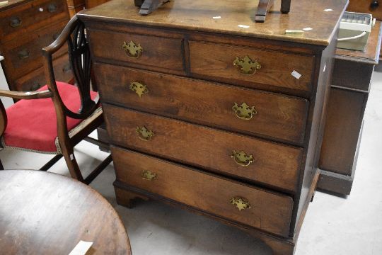 A 19th century oak chest of drawers, of traditional design with shaped brass back plates and bale handles, 98cm x 91cm x 50cm