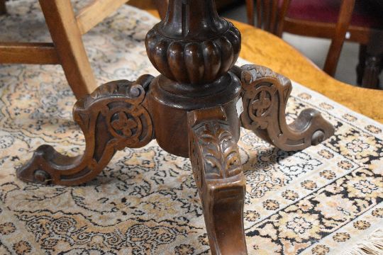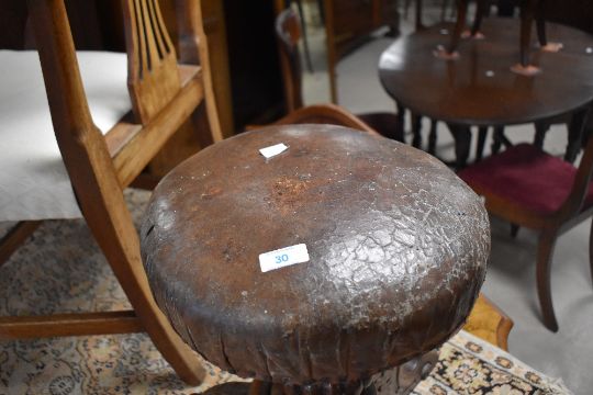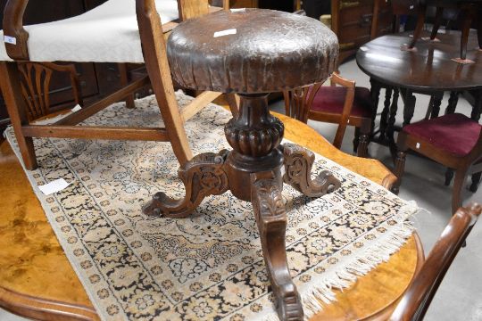 A Victorian revolving piano stool, the circular padded seat with revolving action over a fluted central baluster column and four down-swept legs 46cm x 31cm