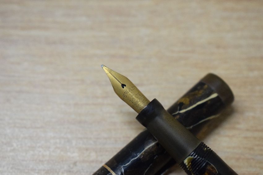 A Mabie Todd & Co Swan L205 47 leverless twist fill fountain pen in Black and Gold mottled with one narrow cap band having Swan 14CT Mabie Todd & Co Ltd Made in England nib