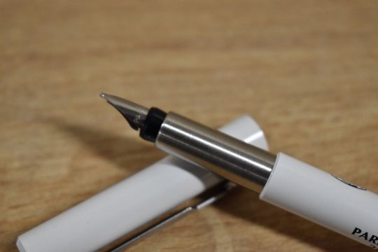A boxed Parker Vector cartridge fill fountain pen in White, the Writing Equipment Society edition