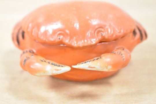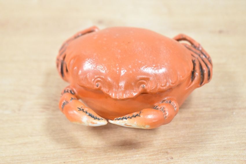 Thought to be early 20th-century Japanese Mino ware crab pot with lid, illegible marking to base, 12cm, condition is consistent with age and use.