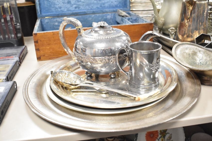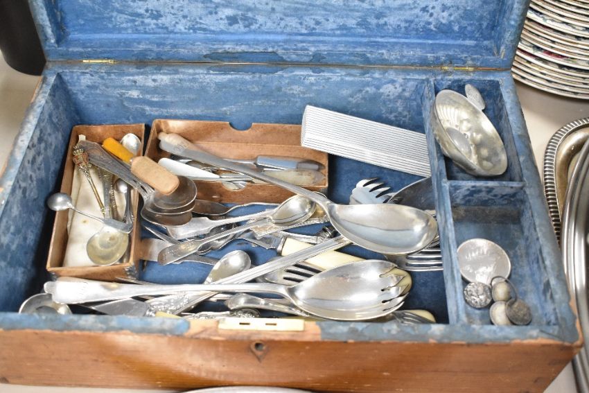 A large quantity of 20th century silver-plated ware to include teapots, coffee pot, cutlery and flatware, condition consistent with age and use.