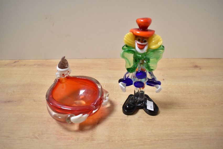 A selection of early to mid 20th-century Murano glass clown figurines, of differing shapes, sizes and colours, all unmarked, (4), condition is consistent with age and use, no visible chips, cracks or fixed damage.