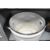 A large vintage porcelain enamel stockpot with lid, featuring a light grey finish, unmarked, approximately 32cm, condition is consistent with age and use, with signs of wear and rust around the handles.