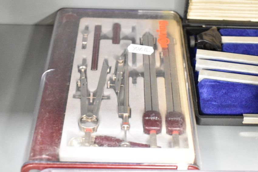 Six boxes of Technical Drawing and Draftsman Instruments by Rotring and Blundell Harding