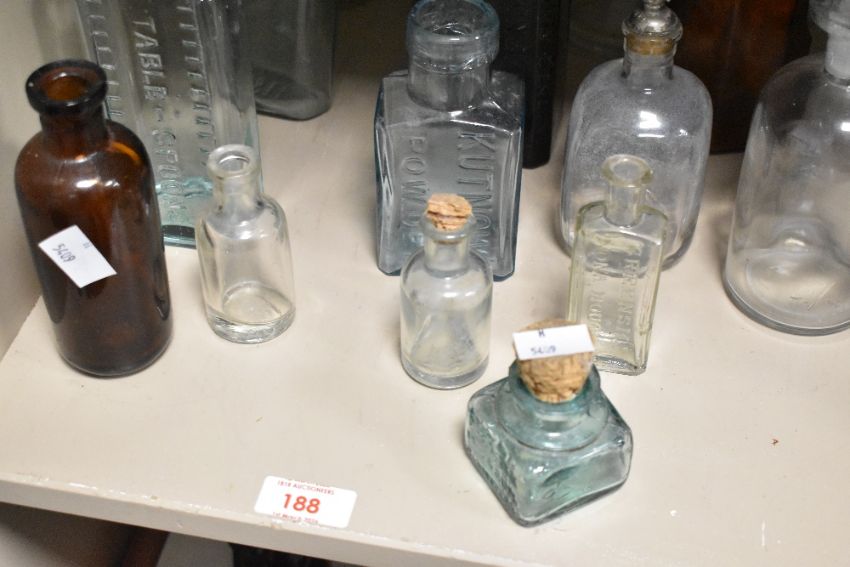 A quantity of 20th century glass bottles to include 'Day Son & Hewitts' chemical extract, 'Kutnow's Powder' and 'Greensill's' Mona Bouquet, fifteen in total, condition consistent with age and use.