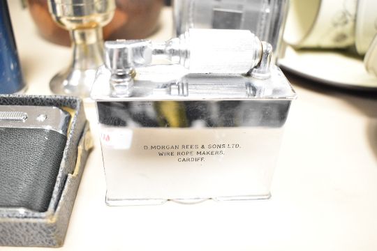 A group of seven 20th century metal lighters including D Morgan Rees and Sons ltd and an Art-Deco style example, condition is consistent with age and use.