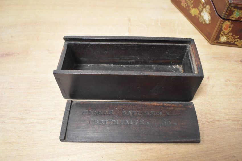 , condition is consistent with age and use, with visible surface wear to some of the metal, no visible chips, cracks, or repairs to the glass, the scissors remain in working condition, the snuff box is rather rusted and contains old debris inside.