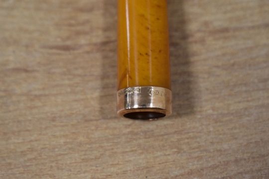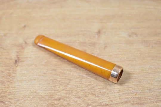 A 9ct gold mounted butterscotch amber cheroot holder, marked 375, 7cm, 5.3g