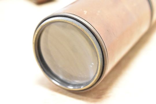 An early 20th-century British WWI-period brass and leather two-draw signalling telescope, Mark IV, by Ryland and Son Limited of London, also approved for General Service and dated 1917; sold with a smaller lens attachment and a leather carry case accommodating both the telescope and the additional lens, marked, (comprising 1 telescope, 1 extra lens and 1 carry case), condition consistent with age and use, with the leather carrying strap degraded and in two pieces, small scuffs to the leather section of the telescope, and visible areas of wear, one section showing more pronounced damage.
