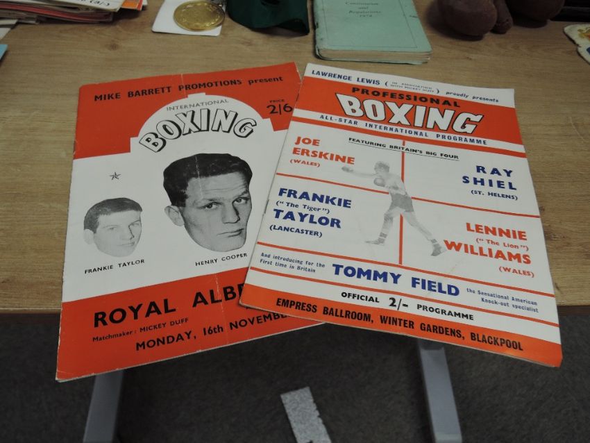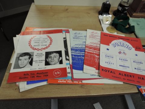 1960's and later Boxing Ephemera and Trophy's, Many Programmes including 1966 Brian London V Muhammad Ali x2, 1971 Joe Bugner V Jurgen Blin, 1972 Jurgen Blin V Joe Bugner, 1967 Henry Cooper V Jack Bodell, Alan Rudkin, Howard Winstone, Walter McGowan, 1971 Henry Cooper V Joe Bugner, 1966 Henry Cooper V Floyd Patterson, many many more including different Weight Classes Title Fights and Amateur Fights, Trophy's and Badges