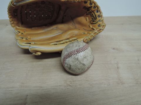 Rawlings RBG 36 Baseball Glove with Deep Well Pocket along with a leather baseball