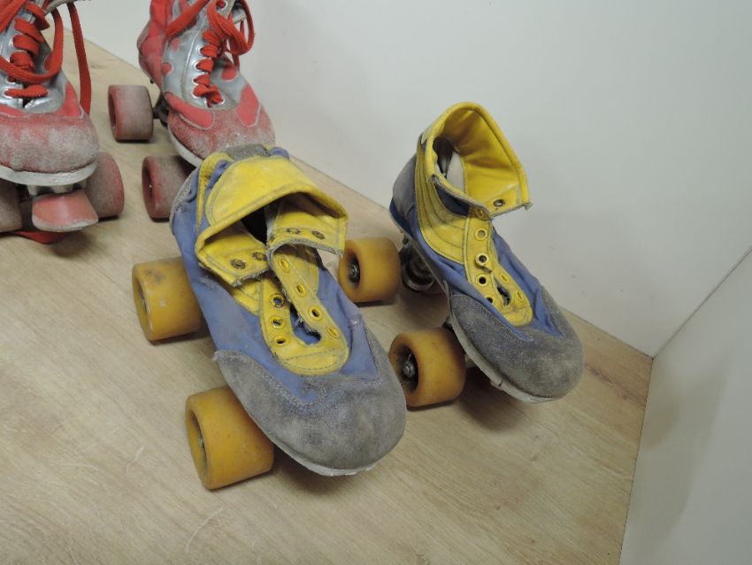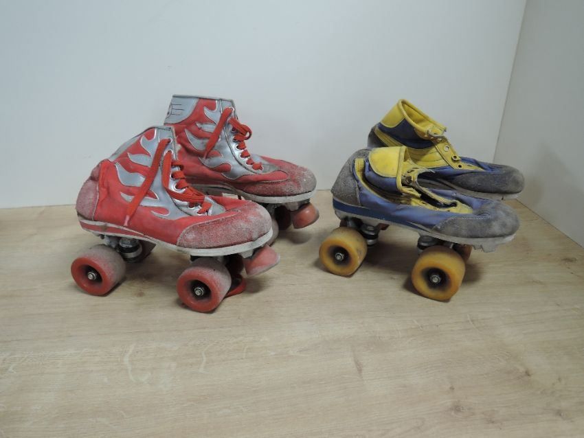 1980's Roller Skates, Red and Silver with Z on the back, Yellow and Blue, both sets well used