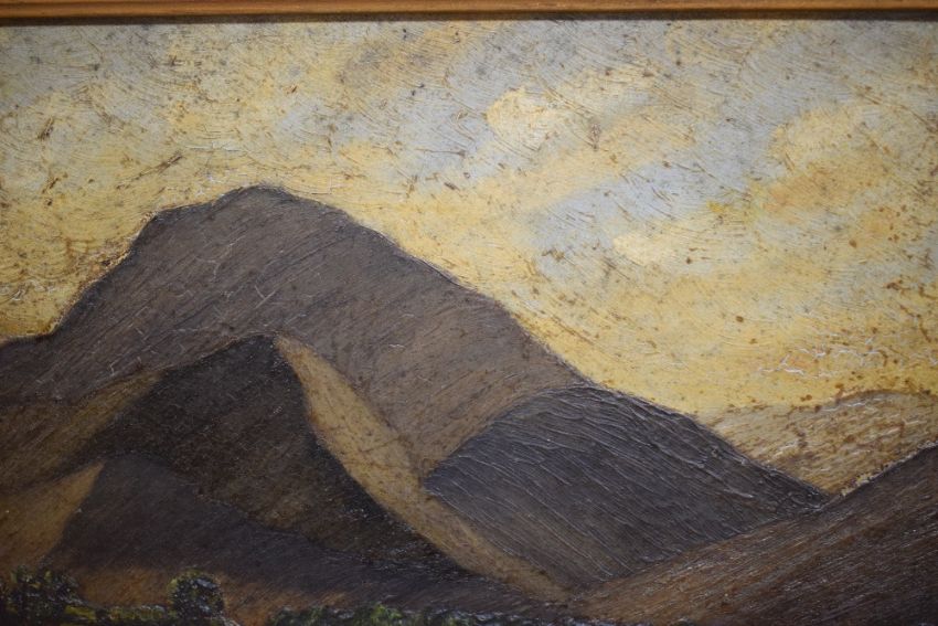 J Bell (19th/20th Century) Oil on canvas, a highland landscape with cattle, signed lower right, gift inscription verso, within moulded gilt frame, 26cm x 36cm & 36cm x 46cm overall. Significant dirt to canvas.