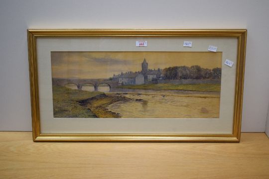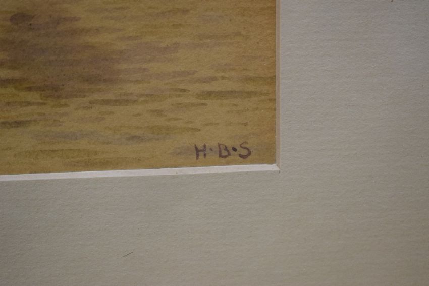 *Local Interest* H.B. Simpson (British 19th Century) a pair of watercolours, estuary landscapes with a village and boats, both initialled lower right, within card mounts and moulded gilt frames, under glass 56cm x 22cm & 70cm x 38cm overall.