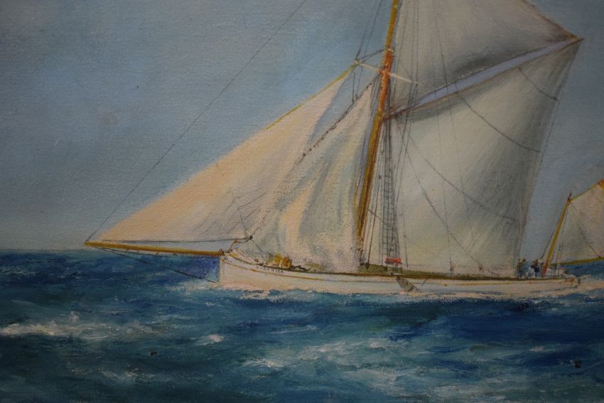 Frank Henry Mason RBA, RI (British 1875-1965) Oil on canvas, depicting a Gaff Cutter sailing vessel, signed lower left, within canvas slip and moulded frame, 74cm x 48.5cm & 87cm x 61cm overall.