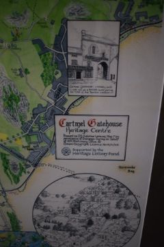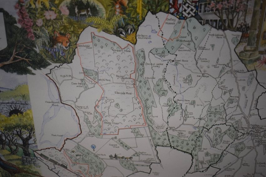 *Local Interest* Jane Pape-Ettridge (British Contemporary) Lithograph 'Millennium Map of the Parish of Lower Allithwaite AD 2000', a colourised illustrated map, signed dated (1999) and numbered (7/50) to lower right margin, within card mount and moulded wooden frame, under glass 58.5cm x 41cm & 84.5cm x 59cm overall. Sold alongside a second unsigned or numbered copy and a map of 'Cartmel Gatehouse Heritage Centre, supported by the Heritage Lottery Fund' by the same artist.