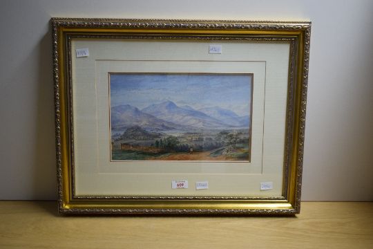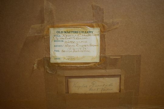 *Local Interest* Thomas Richard Hofland (British 1816 - 1875) Watercolour 'Keswick and Derwentwater on The Road to Kendal', a bygone Lake District Landscape with a figure, signed lower left, attributed entitled and dated (1850) verso, within stepped card mount and moulded gilt frame, under glass 30cm x 19cm & 55cm x 43cm overall.