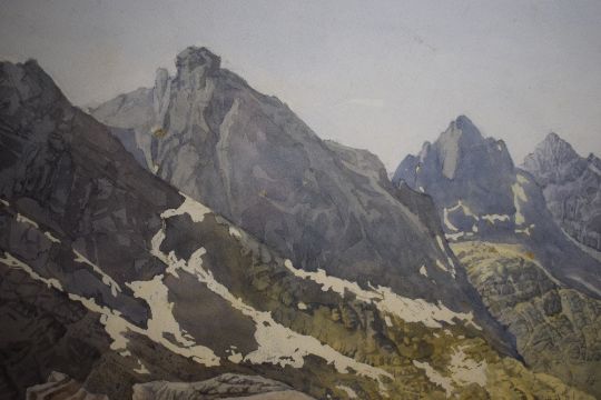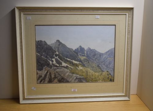 G.S.Prentice (20th Century) Watercolour, a mountainous Scottish Highland landscape, signed lower left, within washline card mount and moulded frame, under glass, 52cm x 38cm & 76cm x 63.5cm overall.