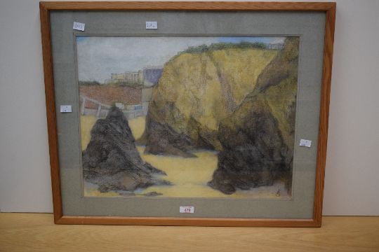 A Contemporary watercolour and oil pastel beach study, initialled 'F.S' lower right, within card mount and flat wooden frame, under glass 52cm x 39cm & 68cm x 55cm overall.