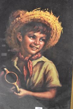 After Tovine (Italian 20th century) colour print 'Country Boy' within a leaf moulded gilt frame, under glass 59cm x 38cm & 74cm x 52.5cm overall.