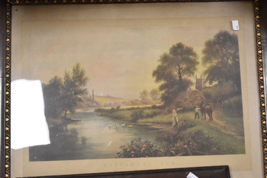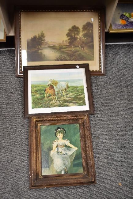 A print after Elwen Edwards entitled September Eve mounted framed and glazed within a pretty oak frame 72cm x 56cm old long with another print after HWB Davis RA entitled Mother and Son in a dark frame 51cm x 41cm and a oil effect portrait of a little girl with a plaster frame 48cm x 43cm.