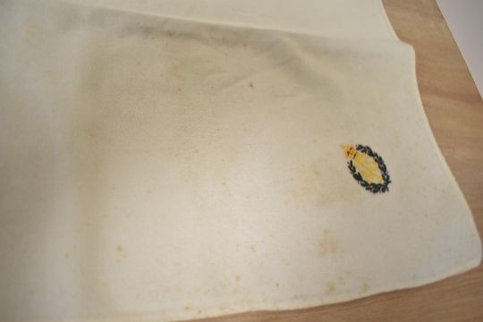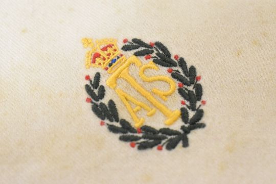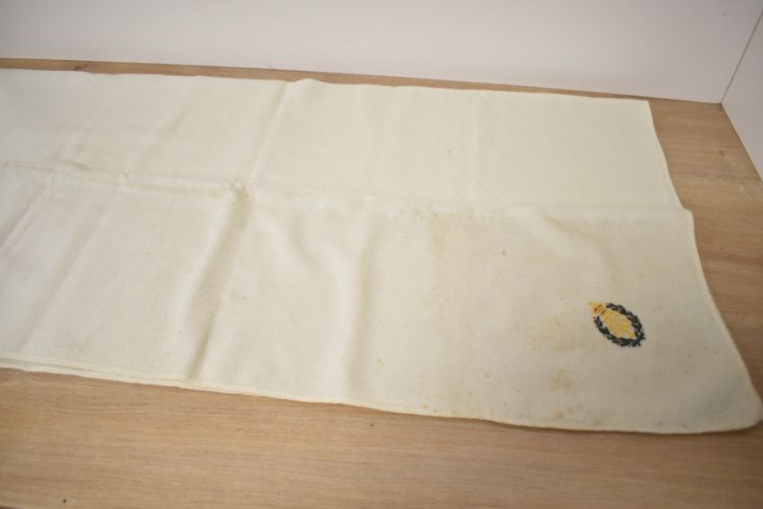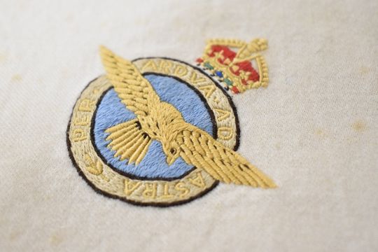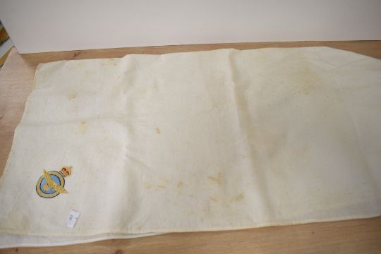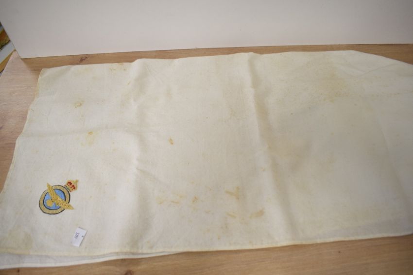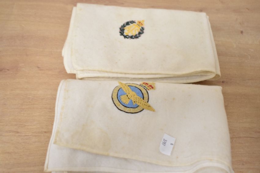 Two vintage WWII militaria woollen scarf/shawles each having an embroidered blazer badge one the RAF and one ATS both 86cm square.
