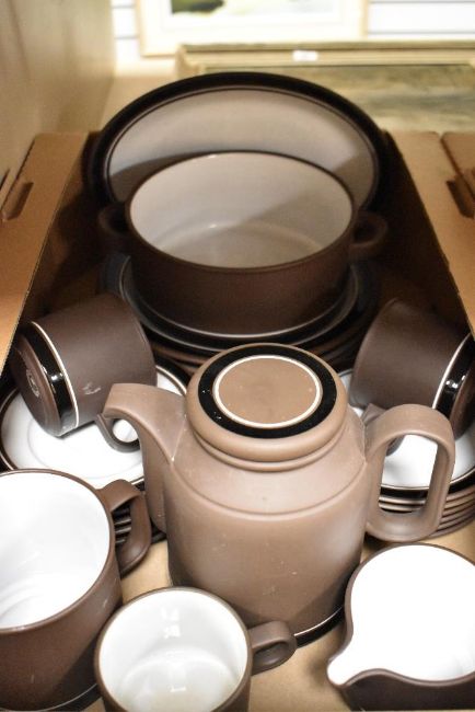 A large Hornsea Pottery 'Contrast' part dinner/tea service in two cartons to include tureens, a variety of plates in ascending sizes, tea pot, milk jugs and condiment set etc. (50)