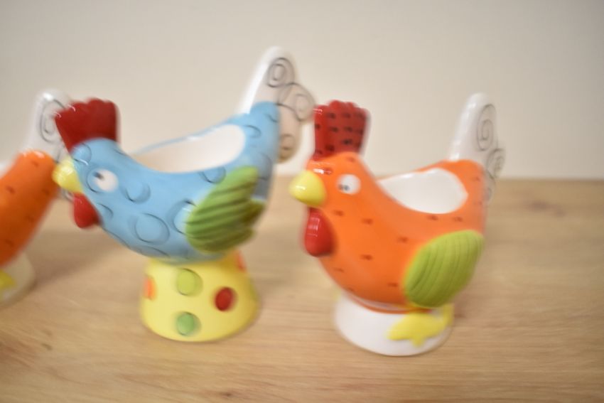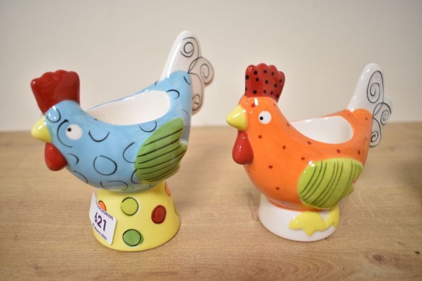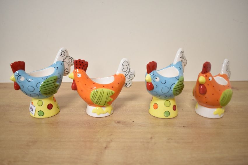 A set of four funky Marks and Spencer egg cups modelled as hens.