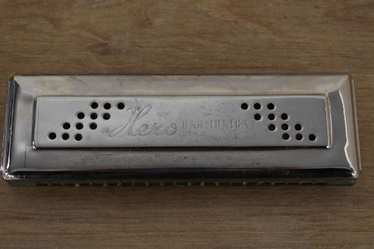Two boxed Harmonicas. A M Hohner 'the Chromonica' and a Hero Harmonica