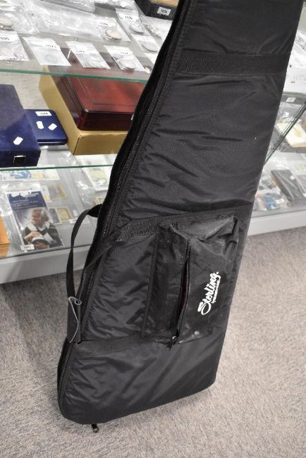 A Fender Squier Jazz bass in blue finish, serial number ICS18128656, dates from 2018 according to Fenders online dater, in excellent condition and sold with two Fender straps including complimentary blue and a padded gig bag