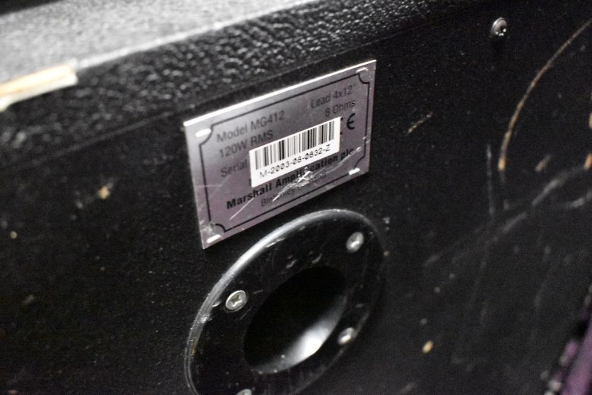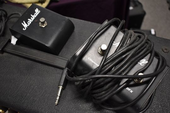 A Marshall MG100 HDFX amplifier and 4 x 10 speaker cabinet, sold with two Marshall footswitches