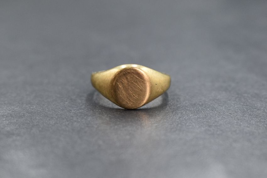 A 9ct gold signet ring, having an oval panel of plain form, marked 375, ring size N-O, 4.5g