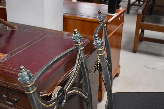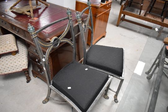 An Italian designer style glass top table with burnished metal frame and set of six (four plus two) similar chairs, table approx. 183 x 107cm