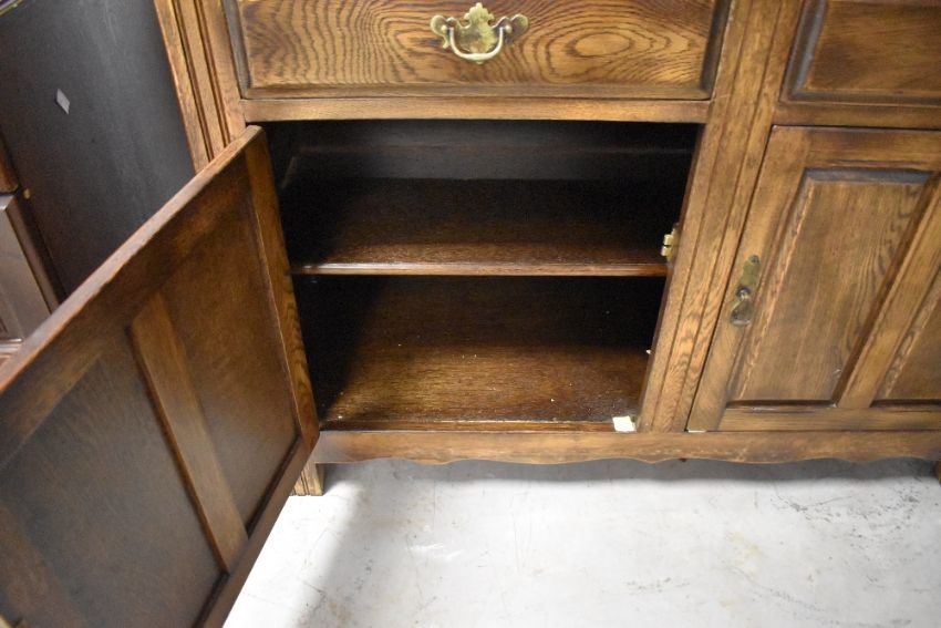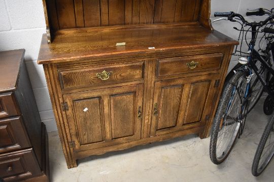 A modern reproduction oak dresser and rack, of traditional design 173cm x 120cm x 44cm