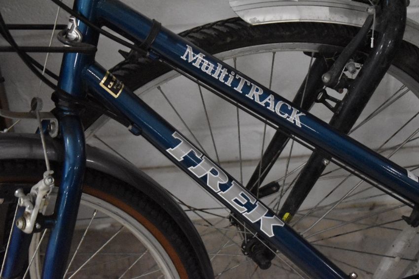 A Trek multi track 700 Sport road bicycle, twist grip gears and pannier bag mounts